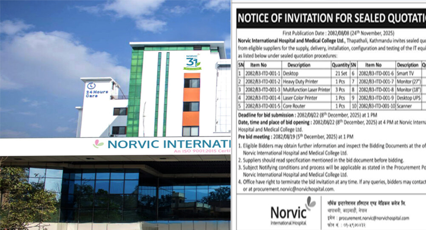 Norvic International Hospital and Medical College Limited has issued a call for closed tenders from qualified suppliers for the procurement of various...